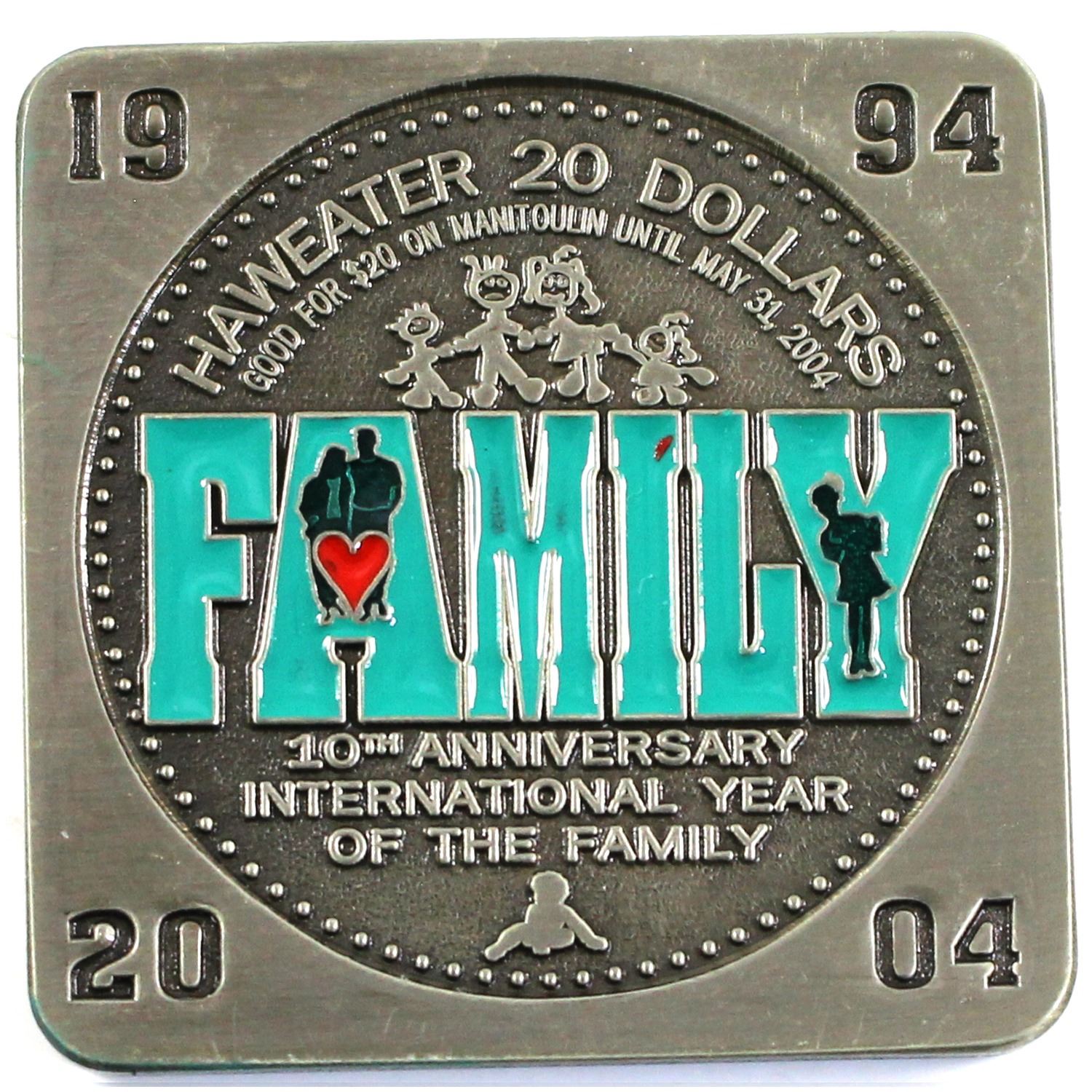 2004 Rare Low Mintage Manitoulin Island Haweater $20 10th anniversary of the international year of the family Square Medallions