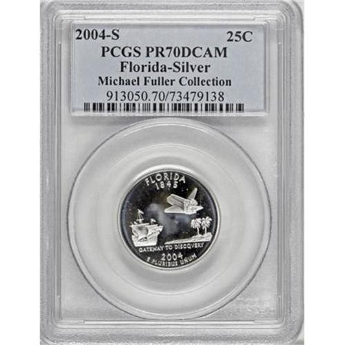 <B>2004-S 25C Florida Silver PR70 Deep Cameo PCGS.</B></I> Michael Fuller Collection. PCGS Population (139/0). NGC Census: (0/0). Numismedia Wsl. Price for NGC/PCGS coin in PR70: $92. (#913050)<BR><BR><b>Shipping:</b> Coins & Currency (<a target="_blank" href="http://www.heritageauctions.com/common/shipping.php">view shipping information</a>)