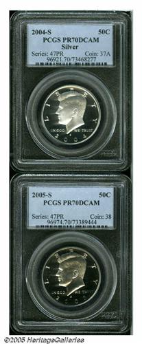 <B>2004-S<50C> Silver PR70 Deep Cameo PCGS,</B></I> immaculate, snow-white; and a <B>2005-S Silver PR70 Deep Cameo PCGS,</B></I> outstanding white on black contrast.<BR><I>From The Western Hills Collection.</B></I>