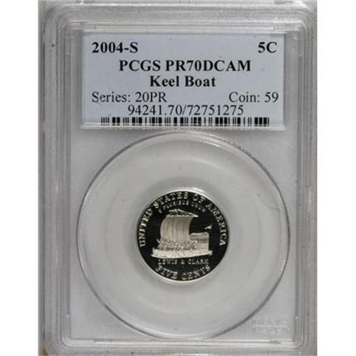 <B>2004-S 5C Keel Boat PR70 Deep Cameo PCGS.</B></I> PCGS Population (233/0). NGC Census: (0/0). Numismedia Wsl. Price for NGC/PCGS coin in PR70: $85. (#94241)<BR><BR><b>Shipping:</b> Coins & Currency (<a target="_blank" href="http://www.heritageauctions.com/common/shipping.php">view shipping information</a>)