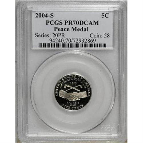2004-S 5C Peace Medal Deep Cameo PR70 PCGS