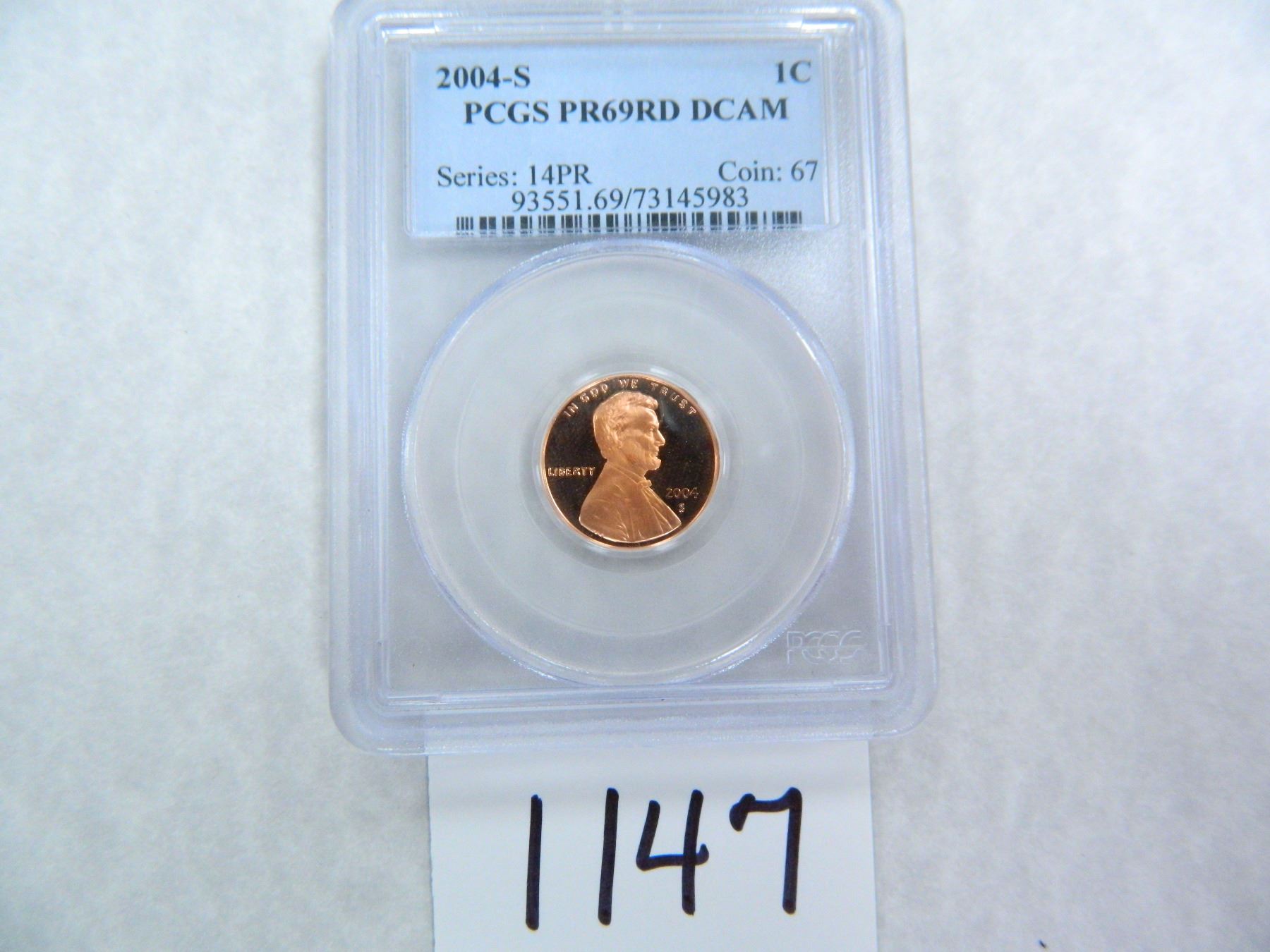2004-S One Cent PCGS graded PR69 RD DC
