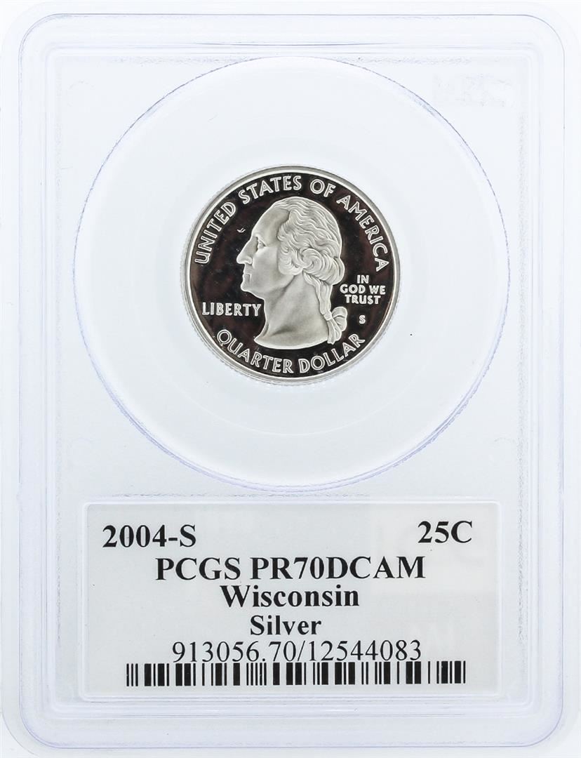 One 2004-S PCGS Graded PR70DCAM Wisconsin Quarter Proof Cameo Coin. PCGS Certified.