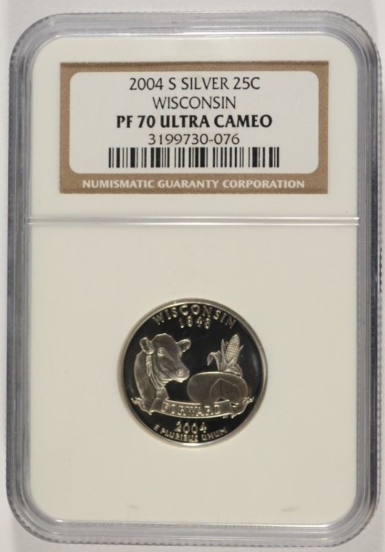 2004-S SILVER STATE QUARTER ( WISCONSIN ) NGC PROOF-70 ULTRA CAMEO!