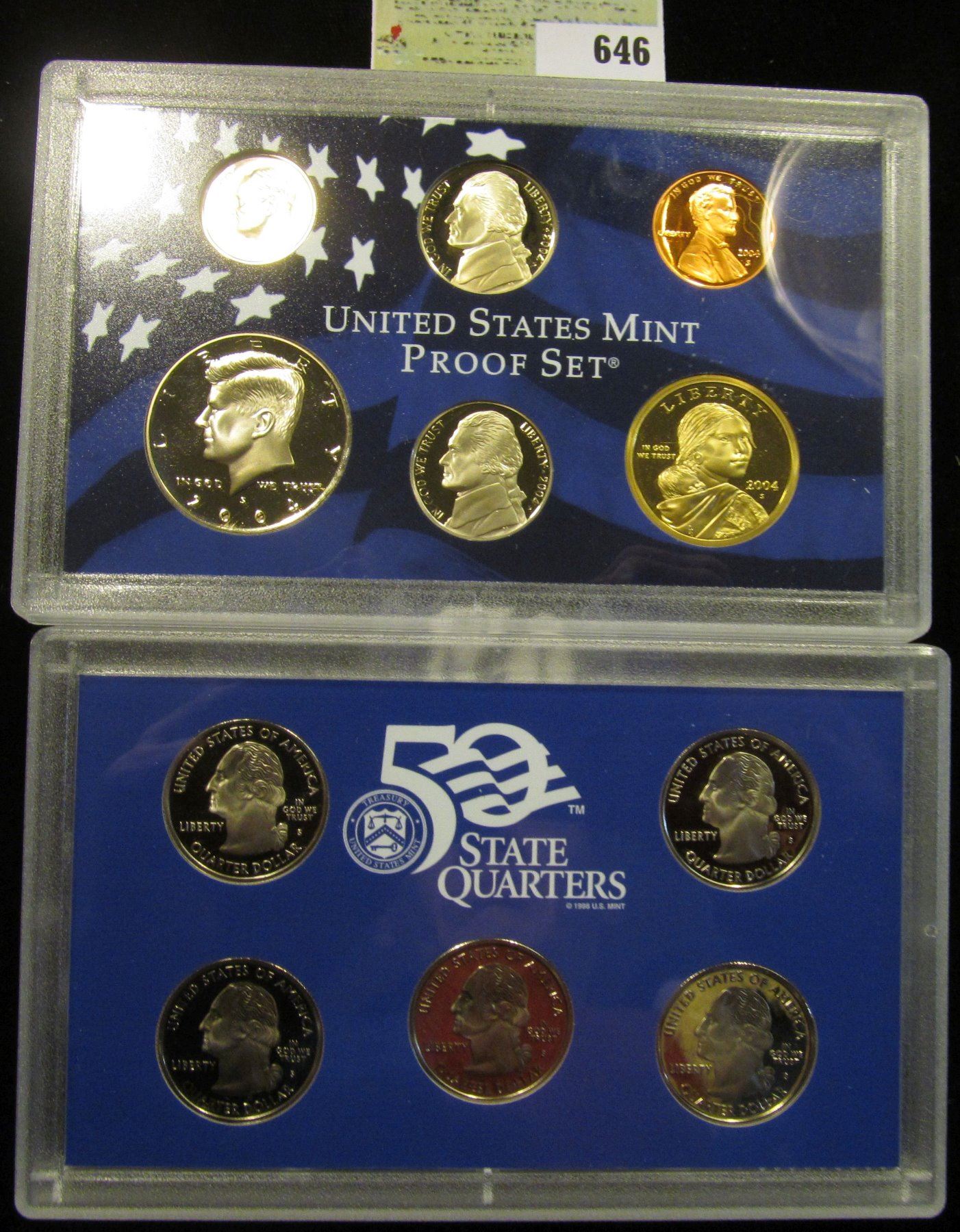 2004 S U.S. Proof Set, Original as issued. A nice attractive set with all coins exhibiting Cameo Frosting.