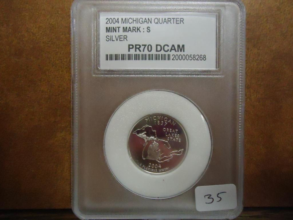 2004 SILVER MICHIGAN QUARTER PCC PR70 DCAM