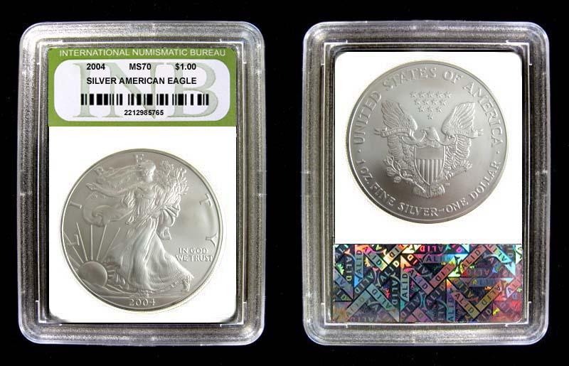 2004 SLABBED SILVER AMERICAN EAGLE HIGHEST GRADE - You may not receive the exact coin shown, but you will receive one of the same or better quality.