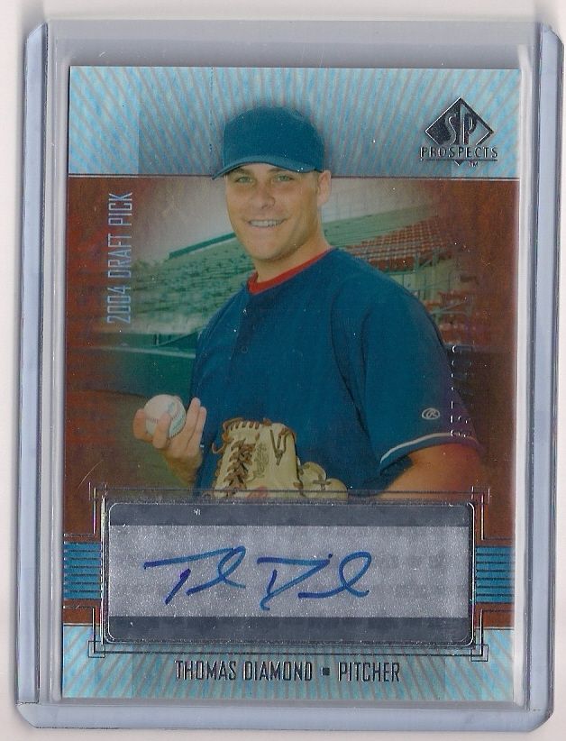 2004 SP Prospects Thomas Diamond Autographed Rookie Card #295. This RC is signed in Blue Sharpee and serial numbered 357/400! Card is Near Mint.
