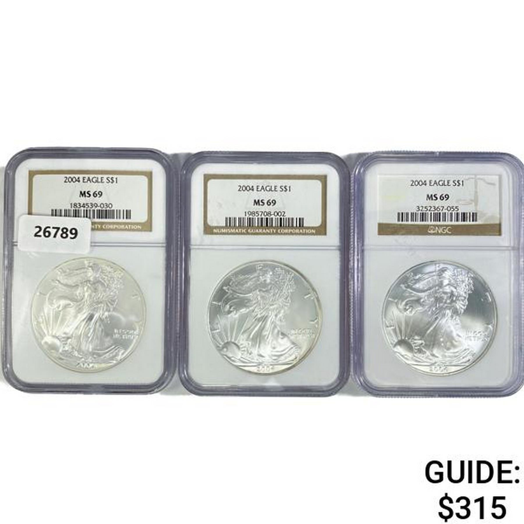 2004 Set [3] American Silver Eagles NGC MS69