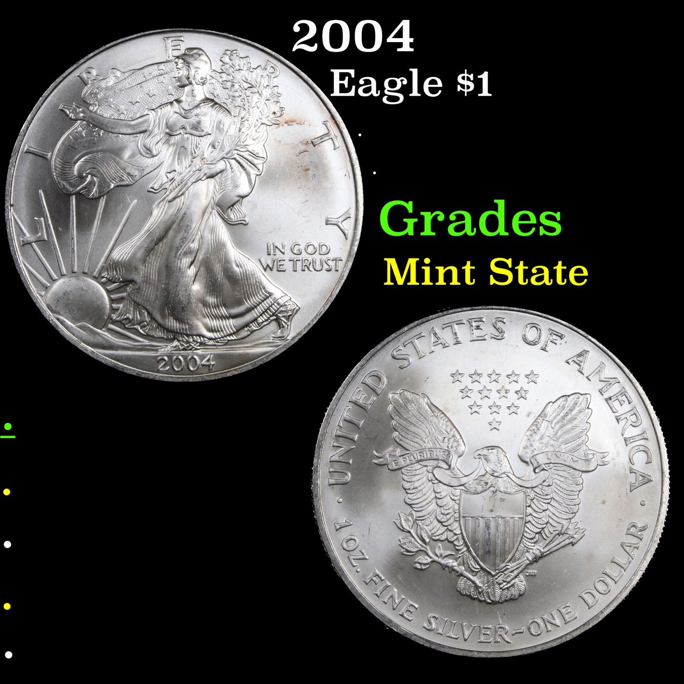 2004 Silver Eagle Dollar $1 Grades Mint State.