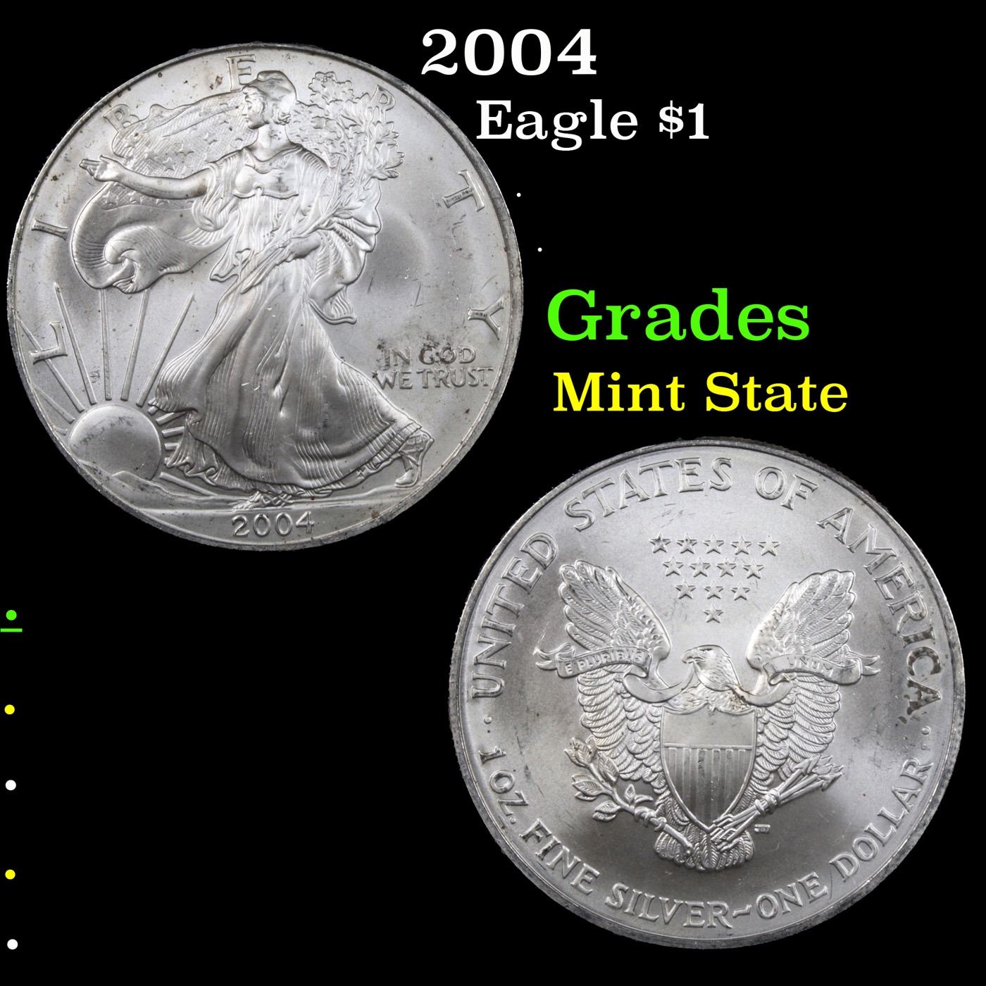 2004 Silver Eagle Dollar $1 Grades Mint State.