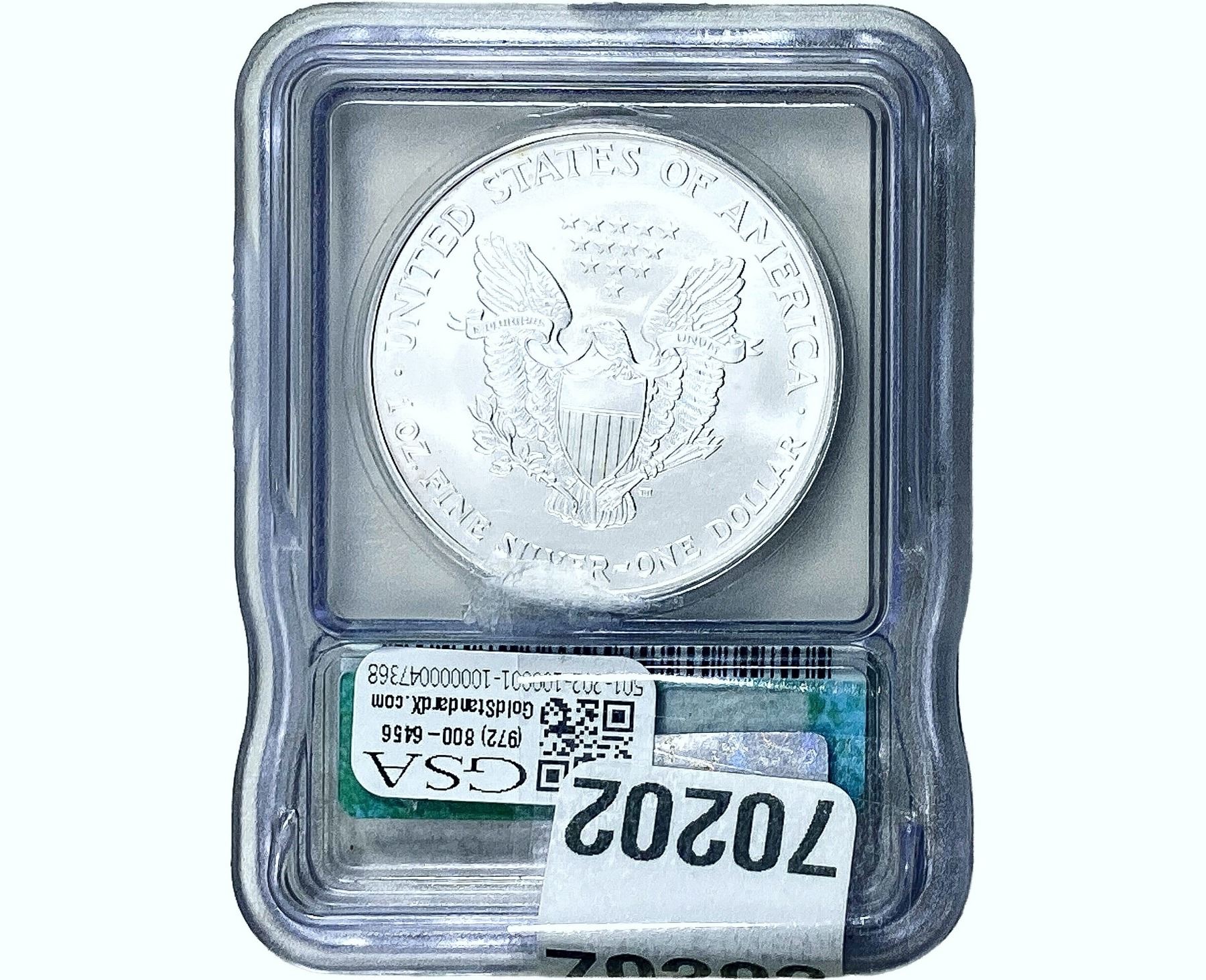 e. Coins sold referencing a third-party grading service are sold “AS IS” without any express or implied warranty, except for a guarantee by GSA that they are genuine. Removal or alteration of the holder, voids all of Bidder’s claims concerning that Product. Certain warranties may be available from the grading services and Bidders are referred to them for further details: Numismatic Guaranty Corporation (NGC), PO Box 4776, Sarasota, FL 34230, www.ngccoin.com/services/writtenguarantee.asp; Professional Coin Grading Services (PCGS), PO Box 9458, Newport Beach, CA 92658, www.pcgs.com/guarantee.html; ANACS, 6555 S. Kenton St., Ste. 303, Englewood, CO 80111; and Independent Coin Grading Co. (ICG), 7901 East Bellview, Ave., Suite 50, Englewood, CO 80111.