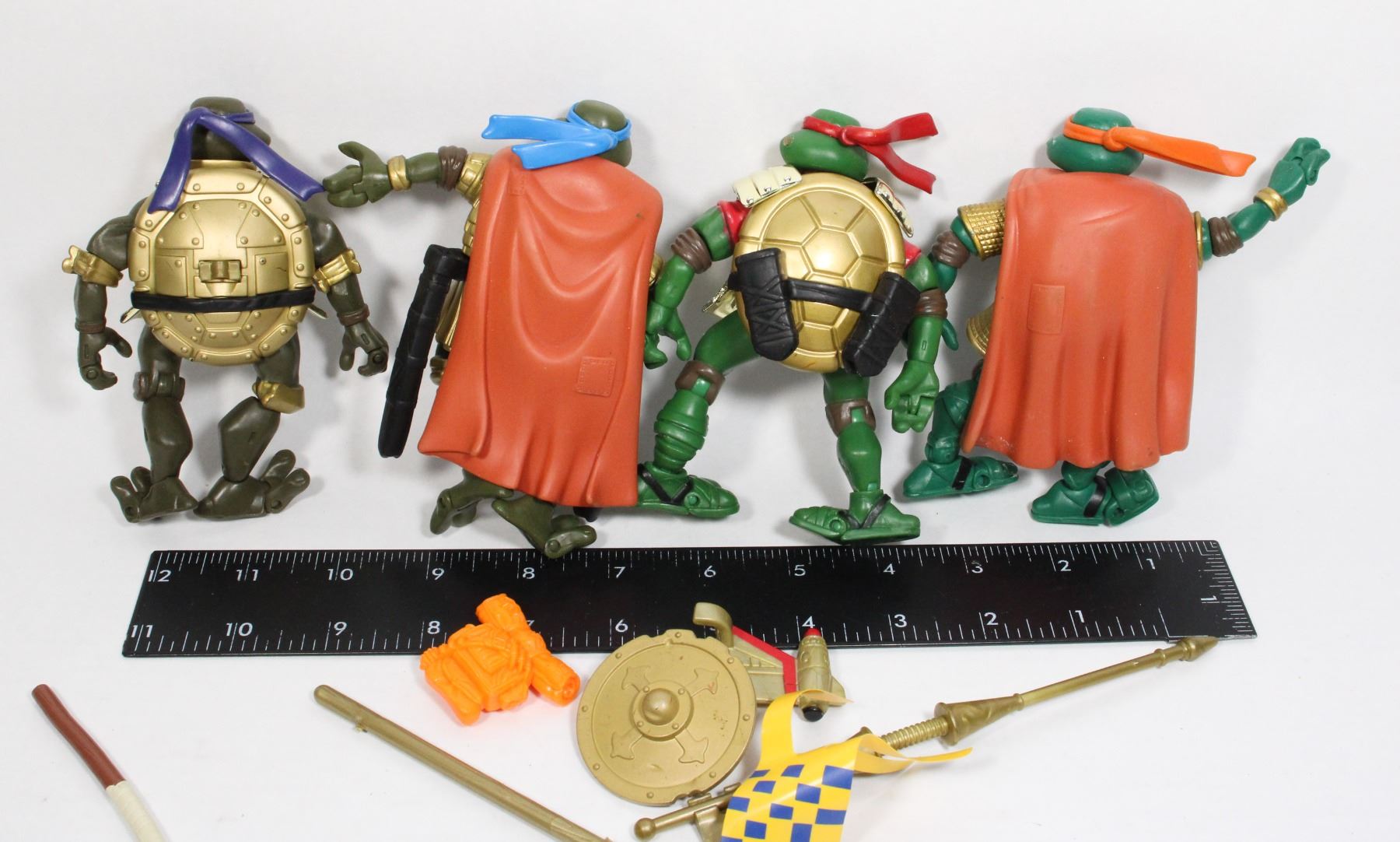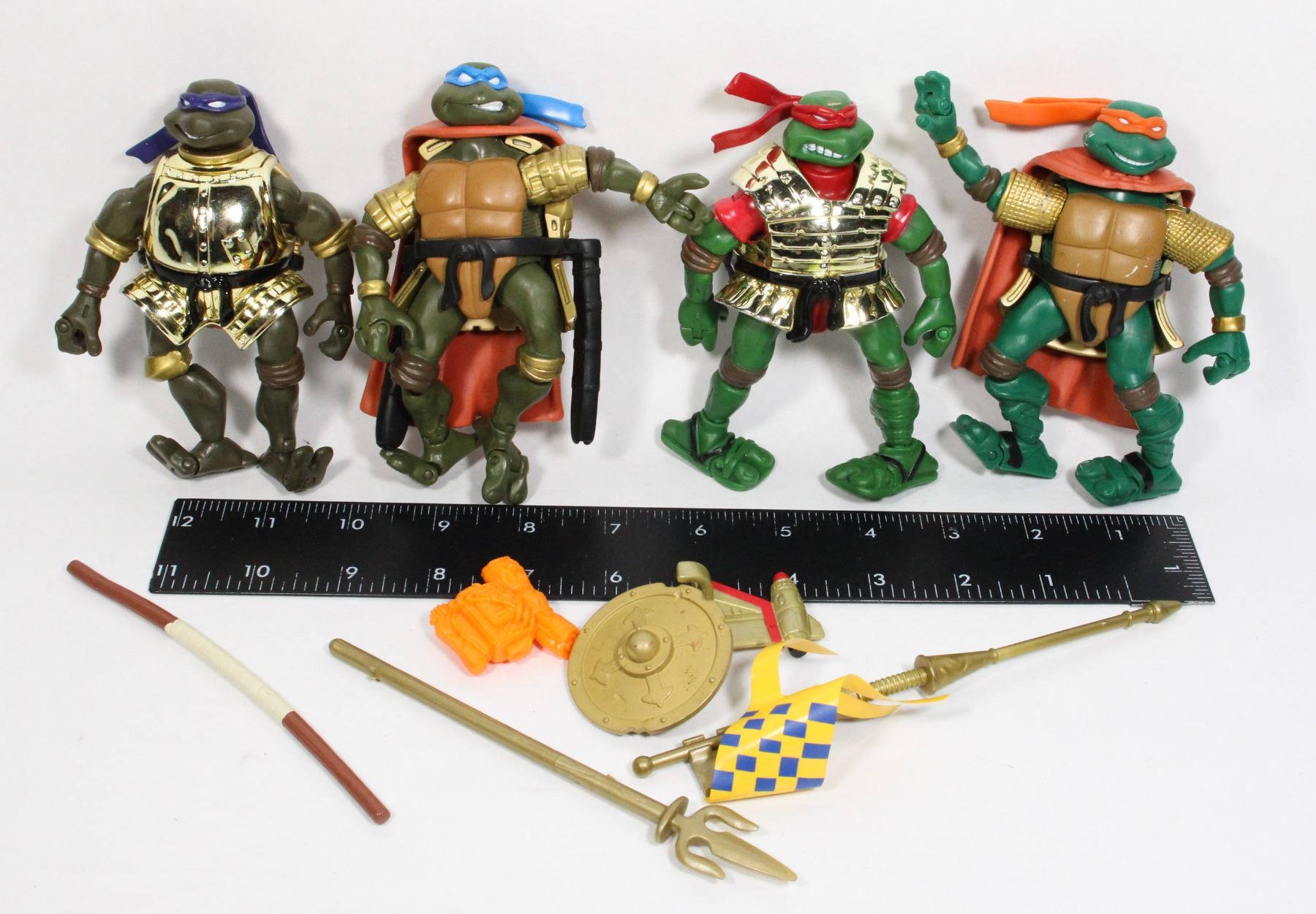 KNIGHTS LEONARDO ACTION FIGURE, DONATELLO ACTION FIGURE, RAPHAEL ACTION FIGURE, MICHAELANGELO ACTION FIGURE WITH ASSORTED ACCESSORIES