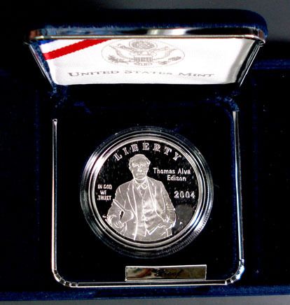 2004 THOMAS EDISON Pf. COMMEM. SILVER DOLLAR, NO CERT.