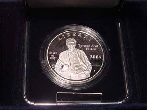 2004 Thomas Edison U.S. Proof Commemorative Silver Dollar in Case