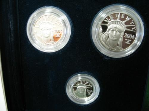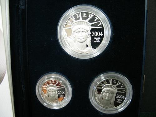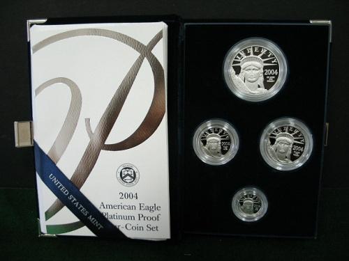 2004 U.S. AMERICAN EAGLE PROOF PLATINUM 4 COIN SET. Consists of $100 coin, $50 coin, $25 coin, and $10 coin. Coins are in case and box.