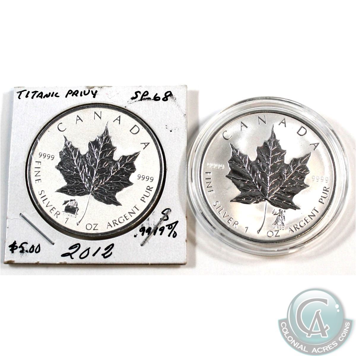 2004 Virgo & 2012 Titanic 1oz .9999 Fine Silver Maple Leafs. Coin are toned (Tax Exempt)2pcs