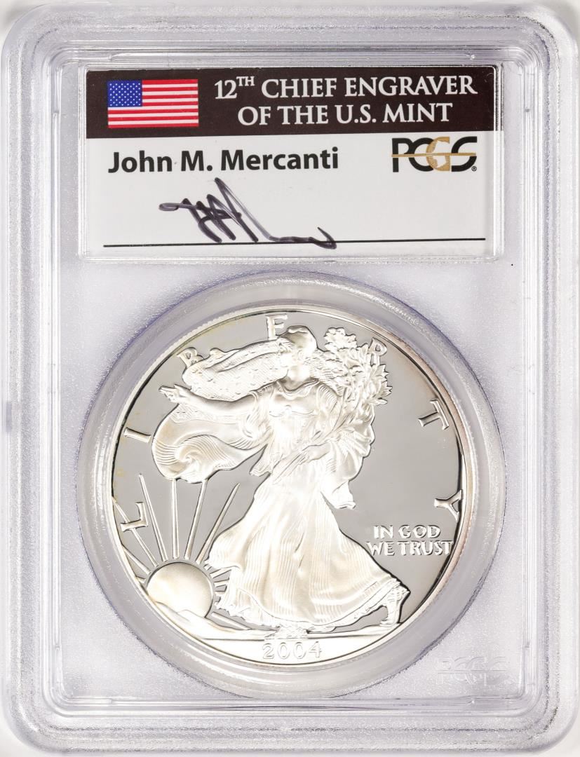 2004-W $1 Proof American Silver Eagle Coin PCGS PR69DCAM Mercanti Signed