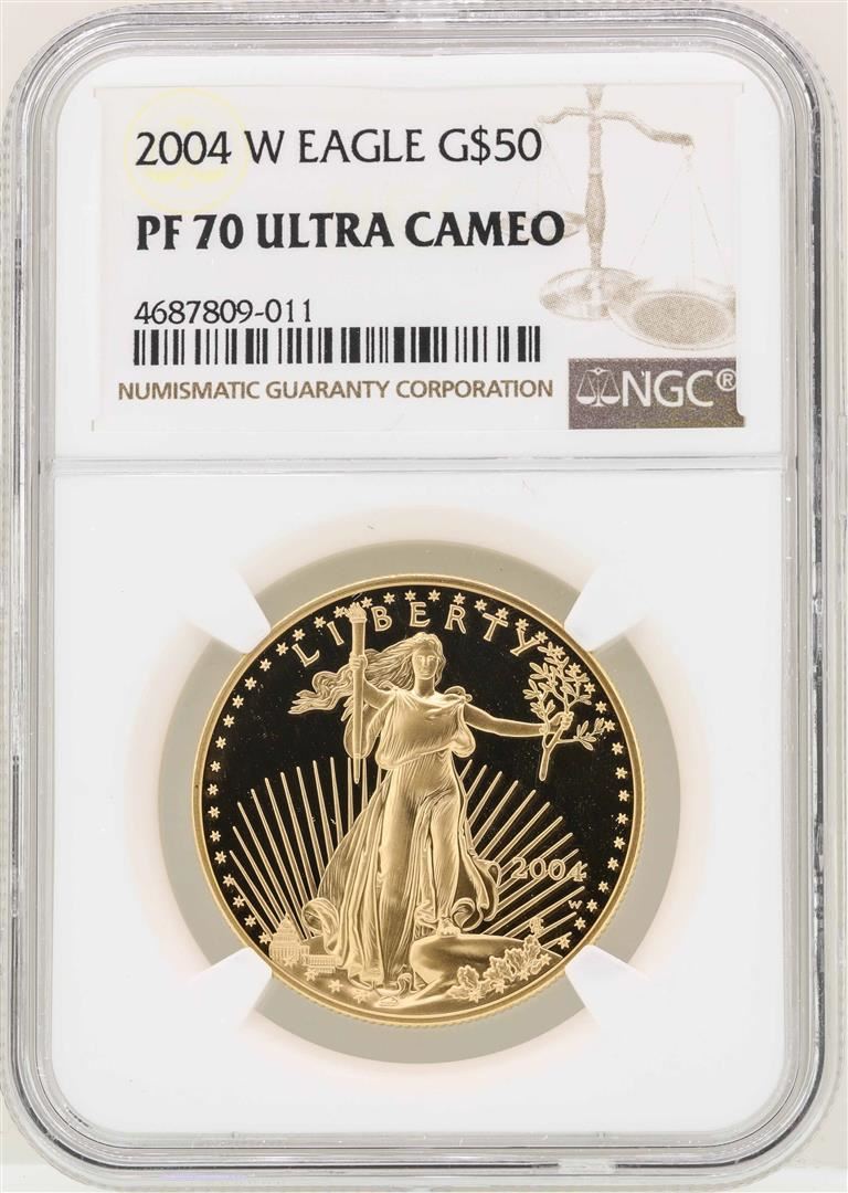 One 2004-W $50 American Gold Eagle Coin NGC PF70 Ultra Cameo. NGC Certified.