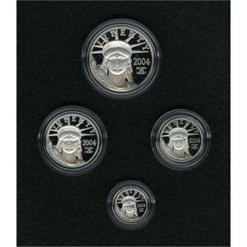 <B>2004-W Platinum American Eagle Proof Set.</B></I> The set contains Uncertified tenth-ounce, quarter-ounce, half-ounce, and one-ounce platinum American eagles. These pristine pieces are housed in the mint box and case of government issue, and are accompanied by a certificate of authenticity.<BR><BR><b>Shipping:</b> Coins & Currency (<a target="_blank" href="http://www.heritageauctions.com/common/shipping.php">view shipping information</a>)