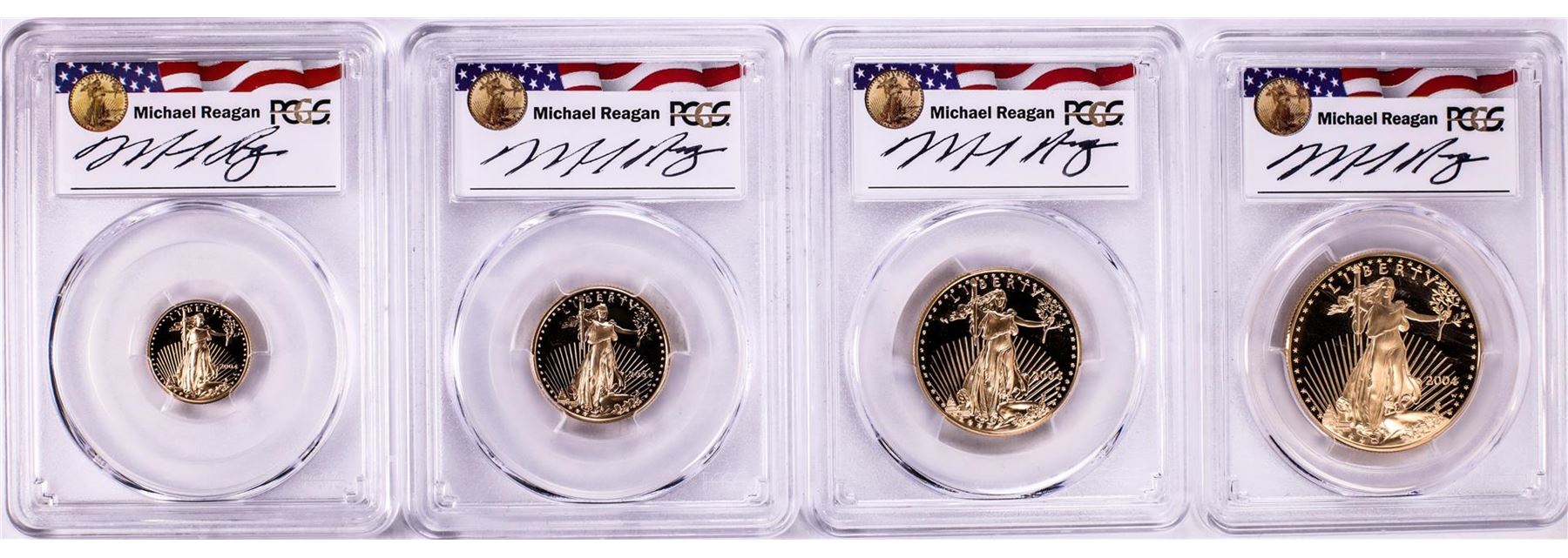 One 2004-W Proof American Gold Eagle (4) Coin Set PCGS PR69DCAM Michael Reagan Signature. PCGS Graded.