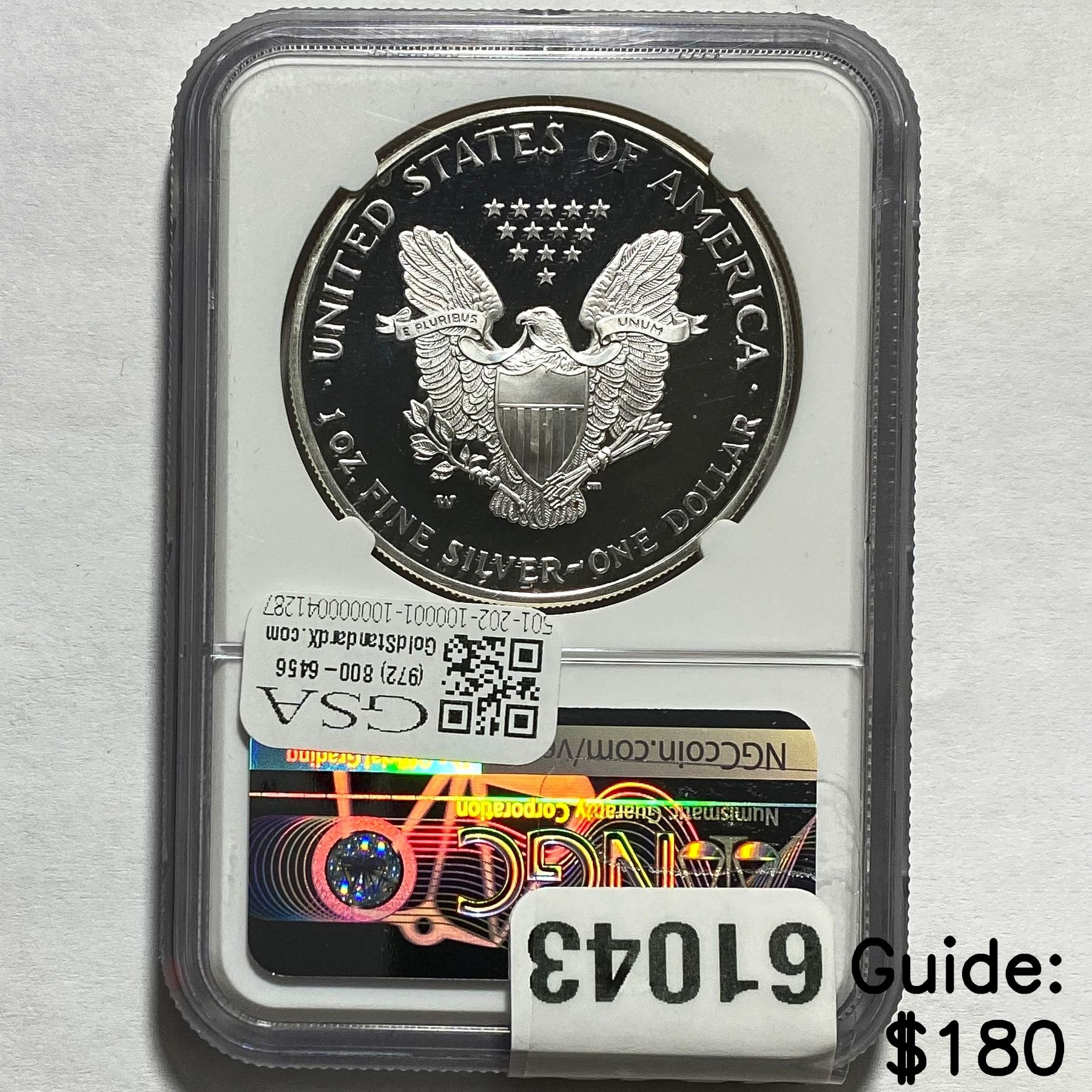 e. Coins sold referencing a third-party grading service are sold “AS IS” without any express or implied warranty, except for a guarantee by GSA that they are genuine. Removal or alteration of the holder, voids all of Bidder’s claims concerning that Product. Certain warranties may be available from the grading services and Bidders are referred to them for further details: Numismatic Guaranty Corporation (NGC), PO Box 4776, Sarasota, FL 34230, www.ngccoin.com/services/writtenguarantee.asp; Professional Coin Grading Services (PCGS), PO Box 9458, Newport Beach, CA 92658, www.pcgs.com/guarantee.html; ANACS, 6555 S. Kenton St., Ste. 303, Englewood, CO 80111; and Independent Coin Grading Co. (ICG), 7901 East Bellview, Ave., Suite 50, Englewood, CO 80111.