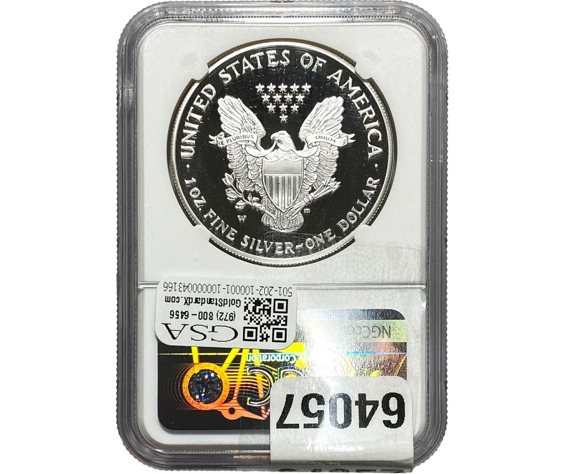 e. Coins sold referencing a third-party grading service are sold “AS IS” without any express or implied warranty, except for a guarantee by GSA that they are genuine. Removal or alteration of the holder, voids all of Bidder’s claims concerning that Product. Certain warranties may be available from the grading services and Bidders are referred to them for further details: Numismatic Guaranty Corporation (NGC), PO Box 4776, Sarasota, FL 34230, www.ngccoin.com/services/writtenguarantee.asp; Professional Coin Grading Services (PCGS), PO Box 9458, Newport Beach, CA 92658, www.pcgs.com/guarantee.html; ANACS, 6555 S. Kenton St., Ste. 303, Englewood, CO 80111; and Independent Coin Grading Co. (ICG), 7901 East Bellview, Ave., Suite 50, Englewood, CO 80111.