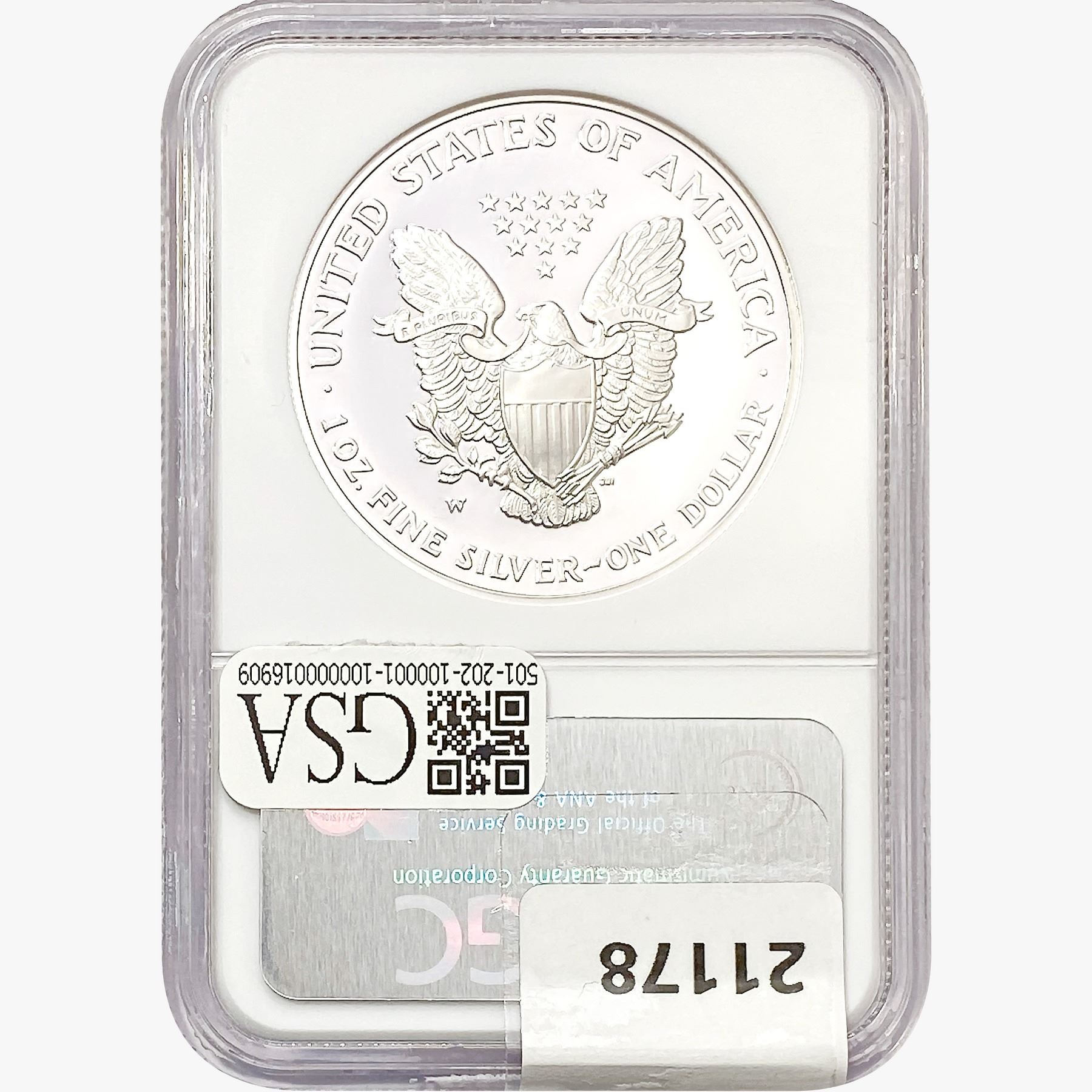 e. Coins sold referencing a third-party grading service are sold “AS IS” without any express or implied warranty, except for a guarantee by GSA that they are genuine. Removal or alteration of the holder, voids all of Bidder’s claims concerning that Product. Certain warranties may be available from the grading services and Bidders are referred to them for further details: Numismatic Guaranty Corporation (NGC), PO Box 4776, Sarasota, FL 34230, www.ngccoin.com/services/writtenguarantee.asp; Professional Coin Grading Services (PCGS), PO Box 9458, Newport Beach, CA 92658, www.pcgs.com/guarantee.html; ANACS, 6555 S. Kenton St., Ste. 303, Englewood, CO 80111; and Independent Coin Grading Co. (ICG), 7901 East Bellview, Ave., Suite 50, Englewood, CO 80111.