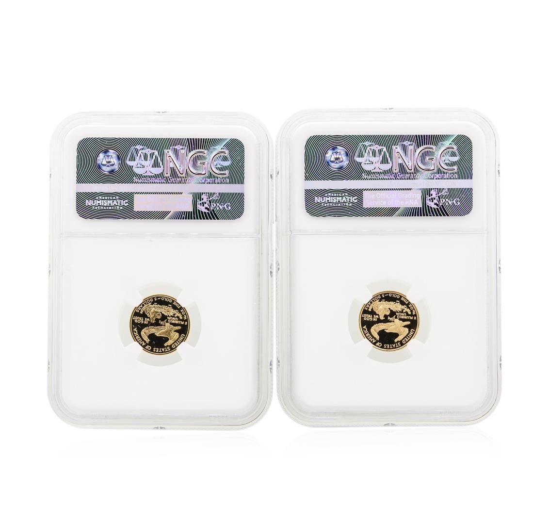 2004-W and 2006-W NGC PF69 Ultra Cameo $5 Eagle Gold Coin Set. The set features: 2004-W NGC PF69 Ultra Cameo $5 Eagle Gold Coin and 2006-W NGC PF69 Ultra Cameo $5 Eagle Gold Coin.
