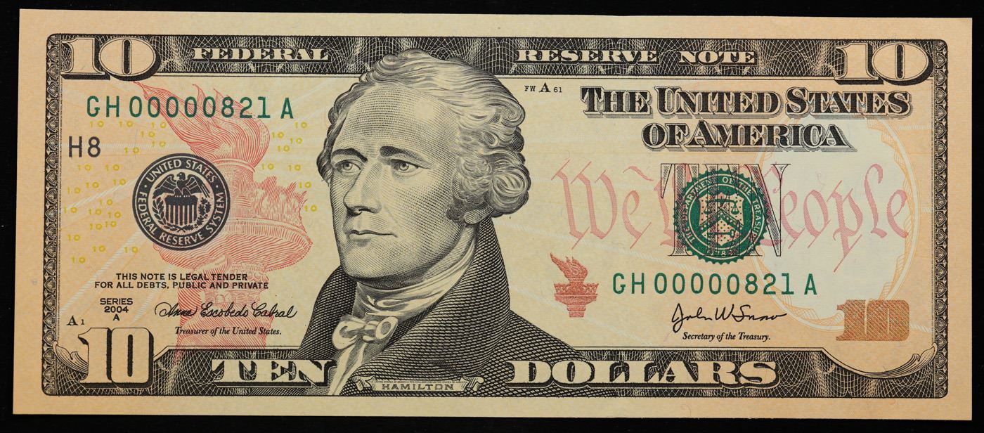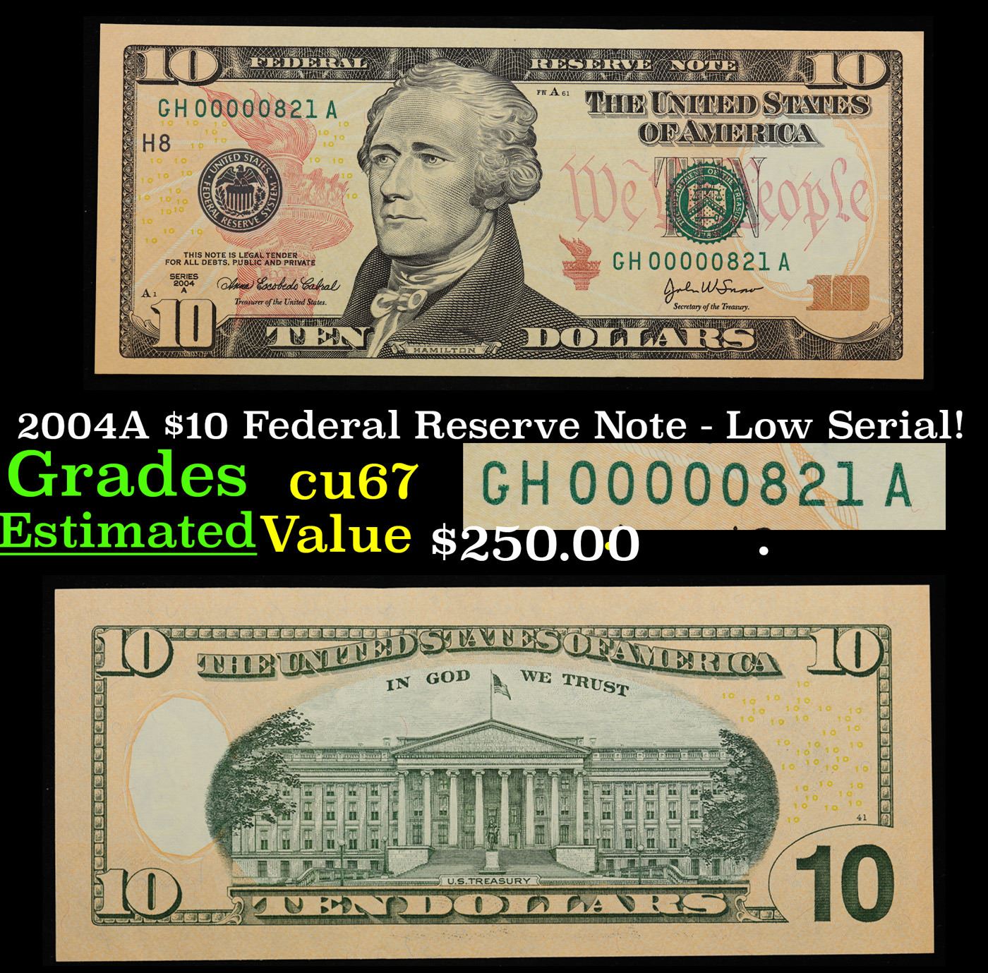2004A $10 Federal Reserve Note - Low Serial! Grades Gem++ CU.