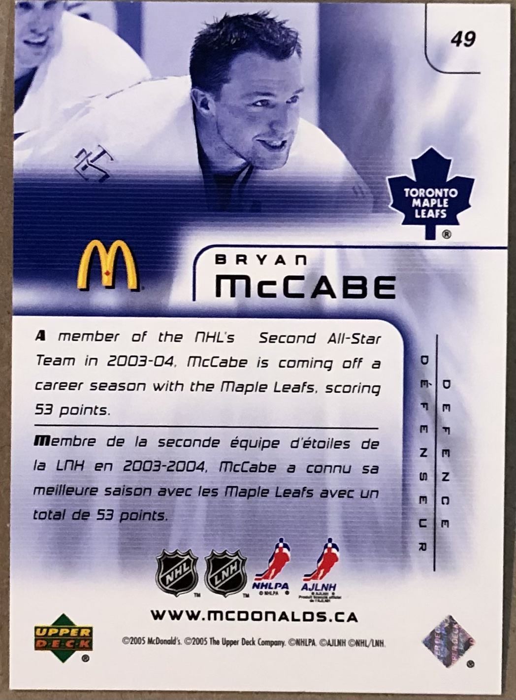 McDonald's #49 NHL, hockey, UD, regional