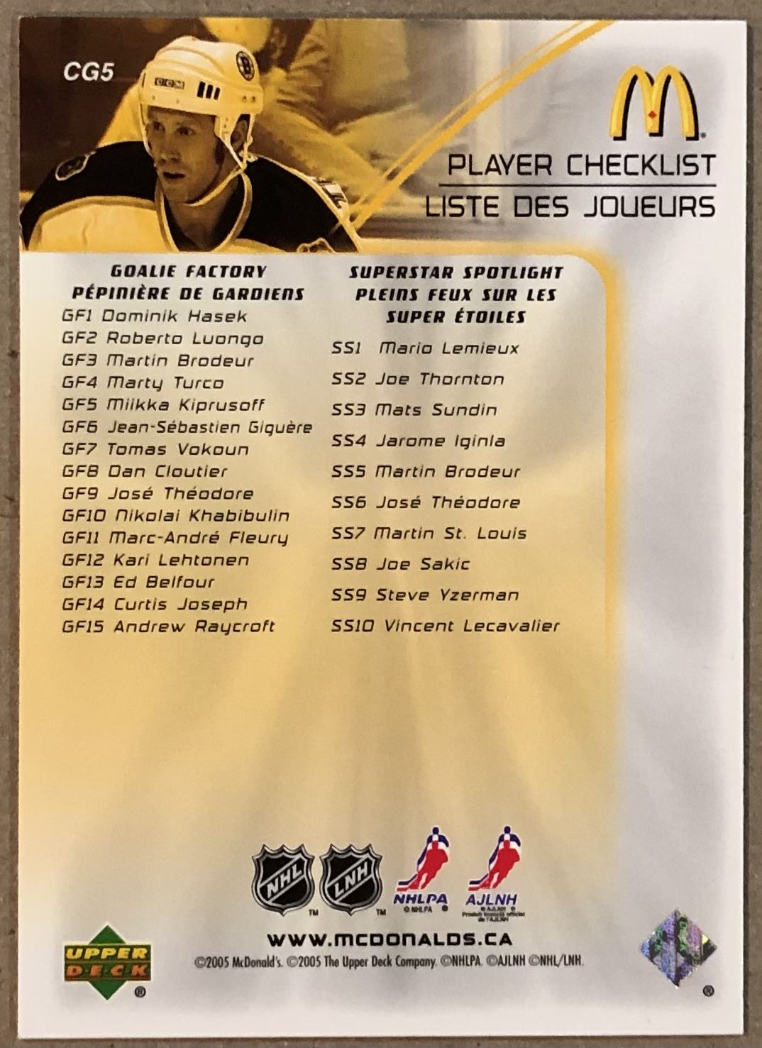 McDonald's #CG5 NHL, hockey, UD, regional, hall of fame