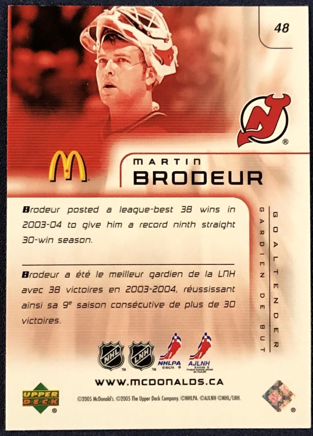 McDonald's card #48 NHL, hockey, regional, UD, hall of fame