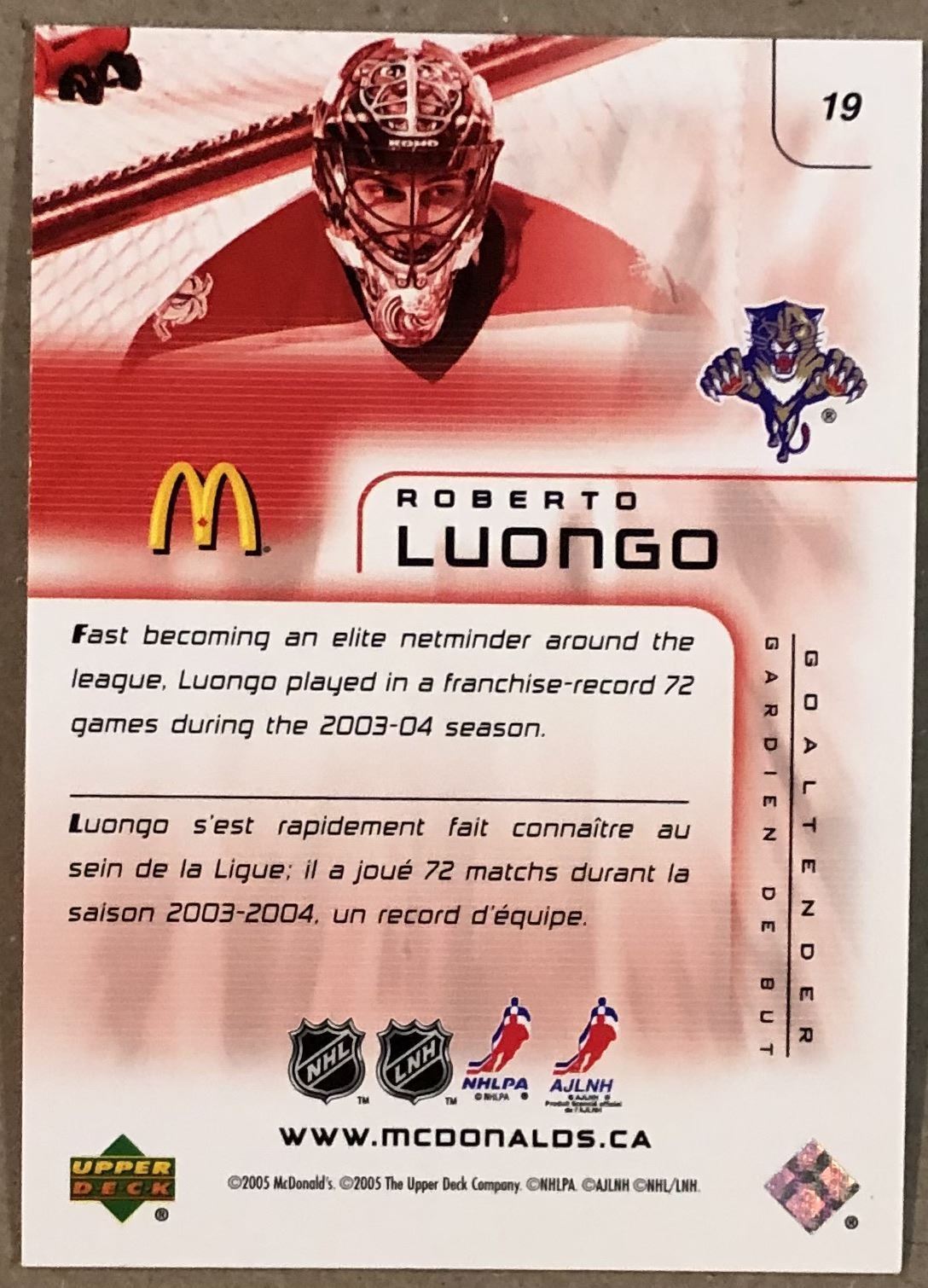 McDonald's #19 NHL, hockey, UD, regional, hall of fame