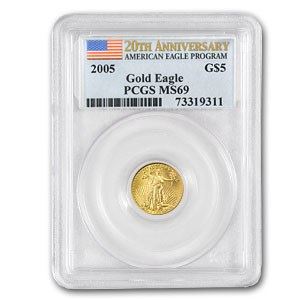 One piece 2005 1/10 oz Gold American Eagle MS-69 PCGS (20th Anniv)