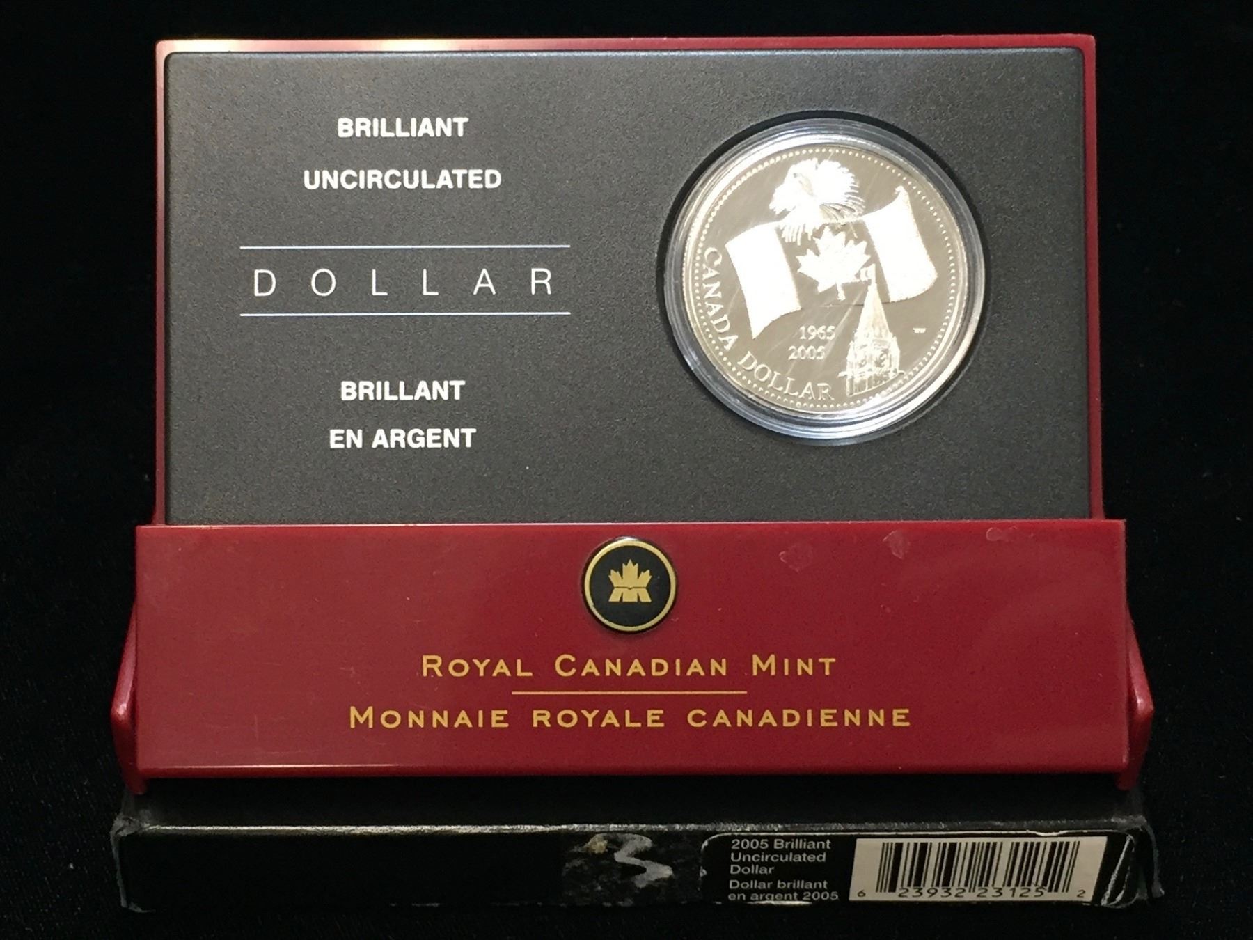 Lot 44; Fine Silver .9999 2005 $1 40th Anniversary of the Canadian Flag Silver BU Dollar, COA Unavailable, RCM Packing