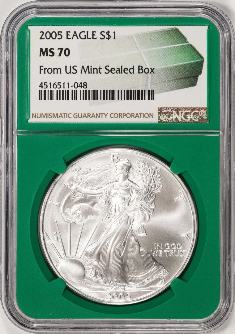 2005 $1 American Silver Eagle Coin NGC MS70 From US Mint Sealed Box Green Core