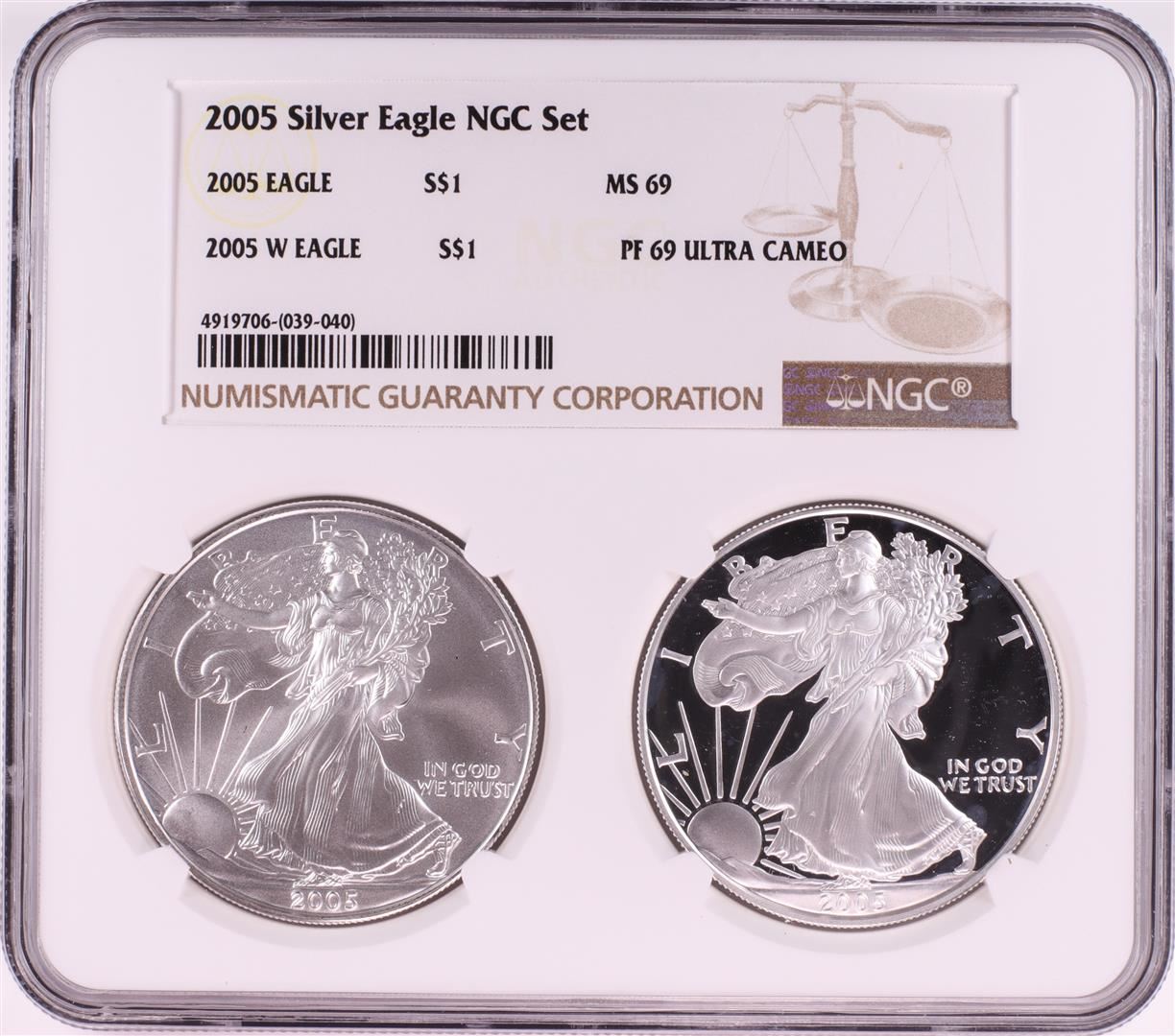 2005 $1 American Silver Eagle Coin Set NGC MS69/PF69 Ultra Cameo
