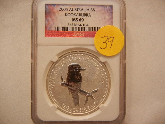 2005 $1 Australian Kookaburra, .999 Fine Silver, 1 Troy Oz., Graded by NGC MS69