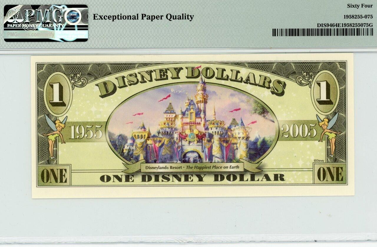 One 2005 $1 Dumbo Disney Dollar PMG 64EPQ.