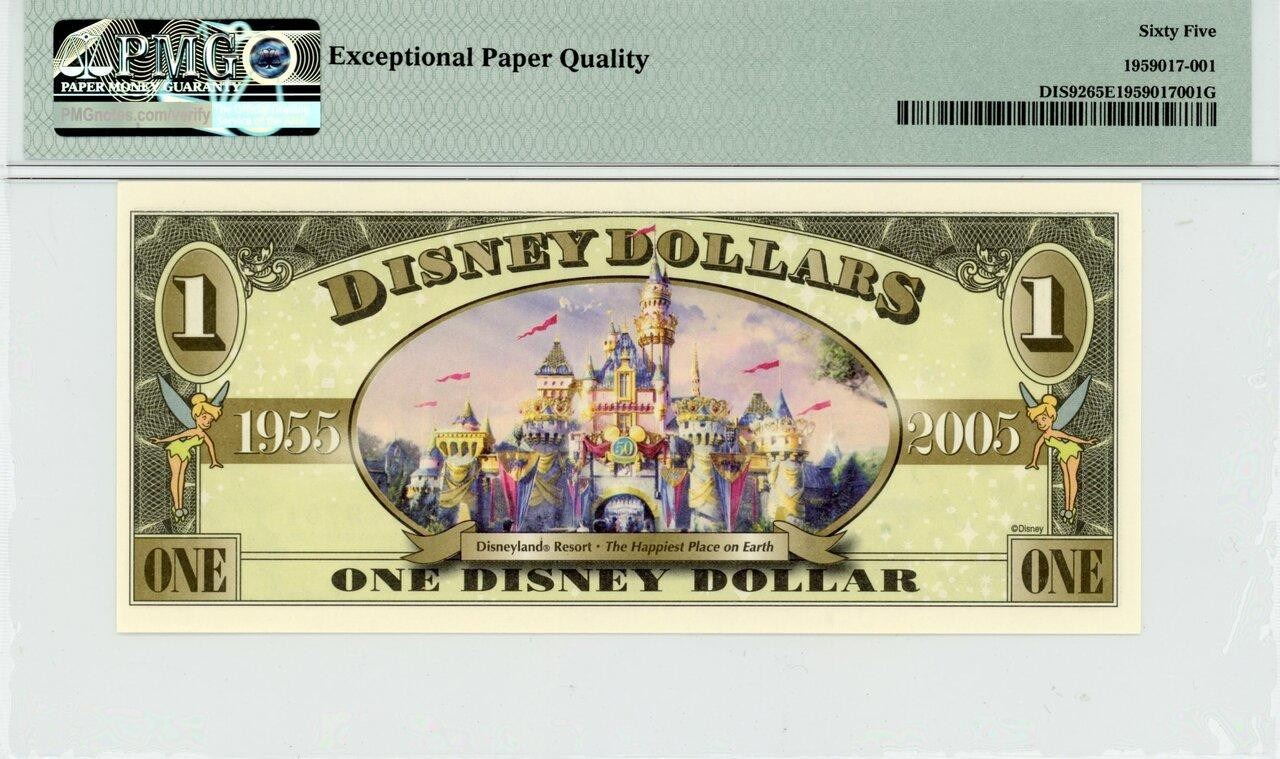 One 2005 $1 Dumbo Disney Dollar PMG 65EPQ.