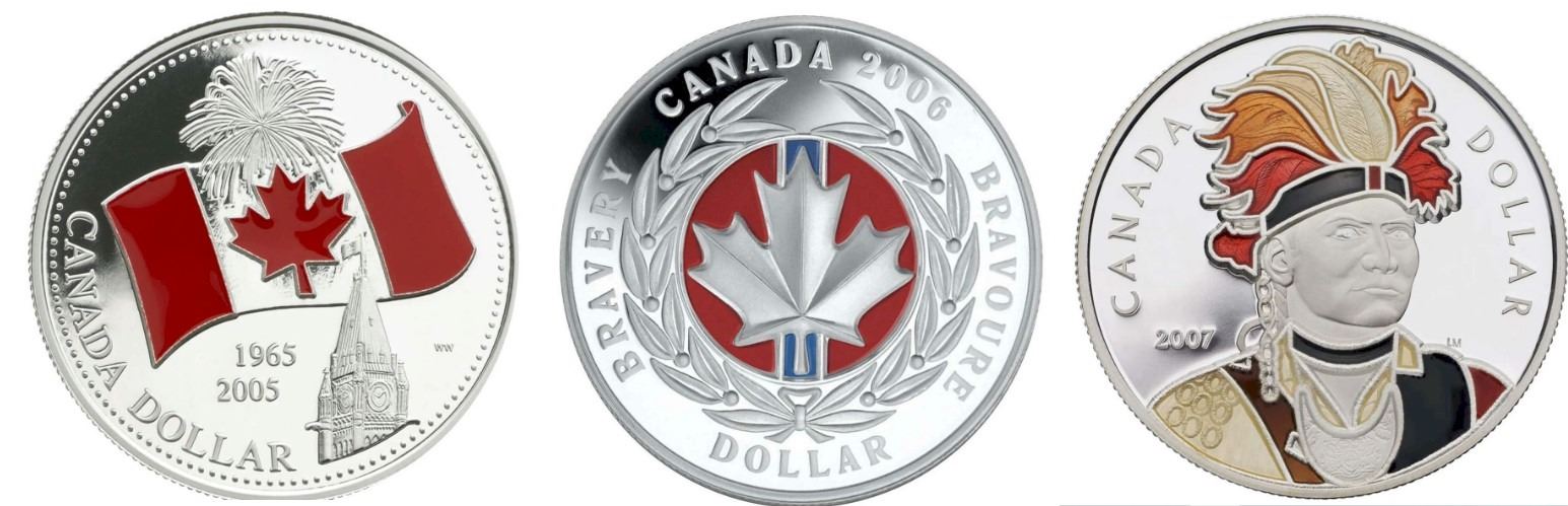 2005 $1 Fine Silver Coin Canadas National Flag 40th Anniversary Enamelled, 2006 Limited Edition Proof Silver Dollar with Enamel