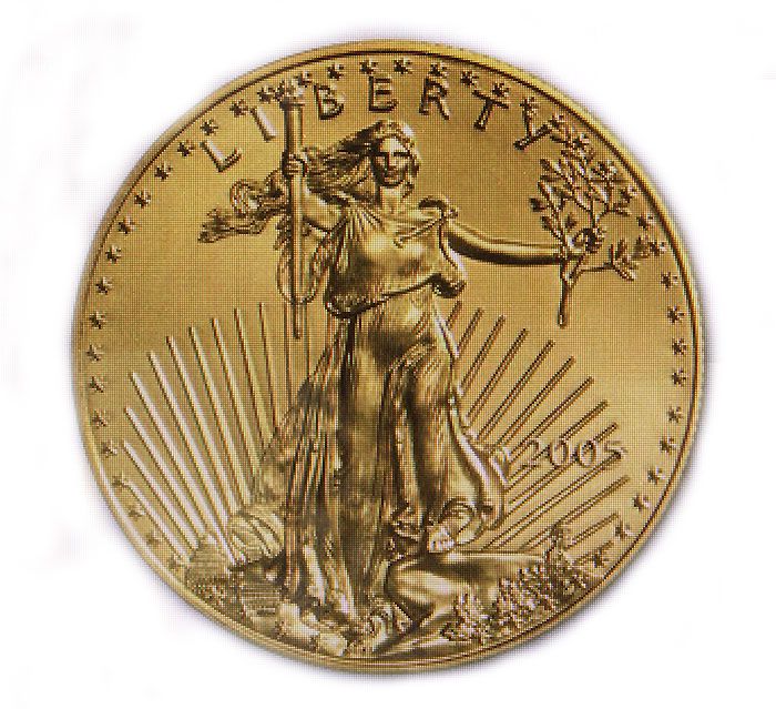 2005 1 oz Gold American Eagle - Brilliant Uncirculated **|**|** 2005 1 oz Gold American Eagle - Brilliant UncirculatedYear ***2005Grade***Brilliant CirculatedDenomination**50Dim.**32.7Thick:**2.87mm ; MSRP: $5900