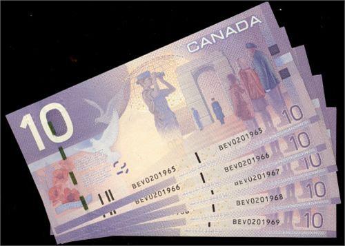 2005 $10, 5 consecutive insert notes BEV0201965 to 1969. All Gem's