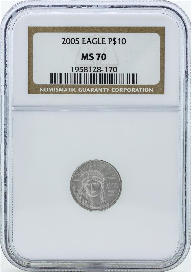 One 2005 $10 American Platinum Eagle Coin NGC MS70. NGC Certified.