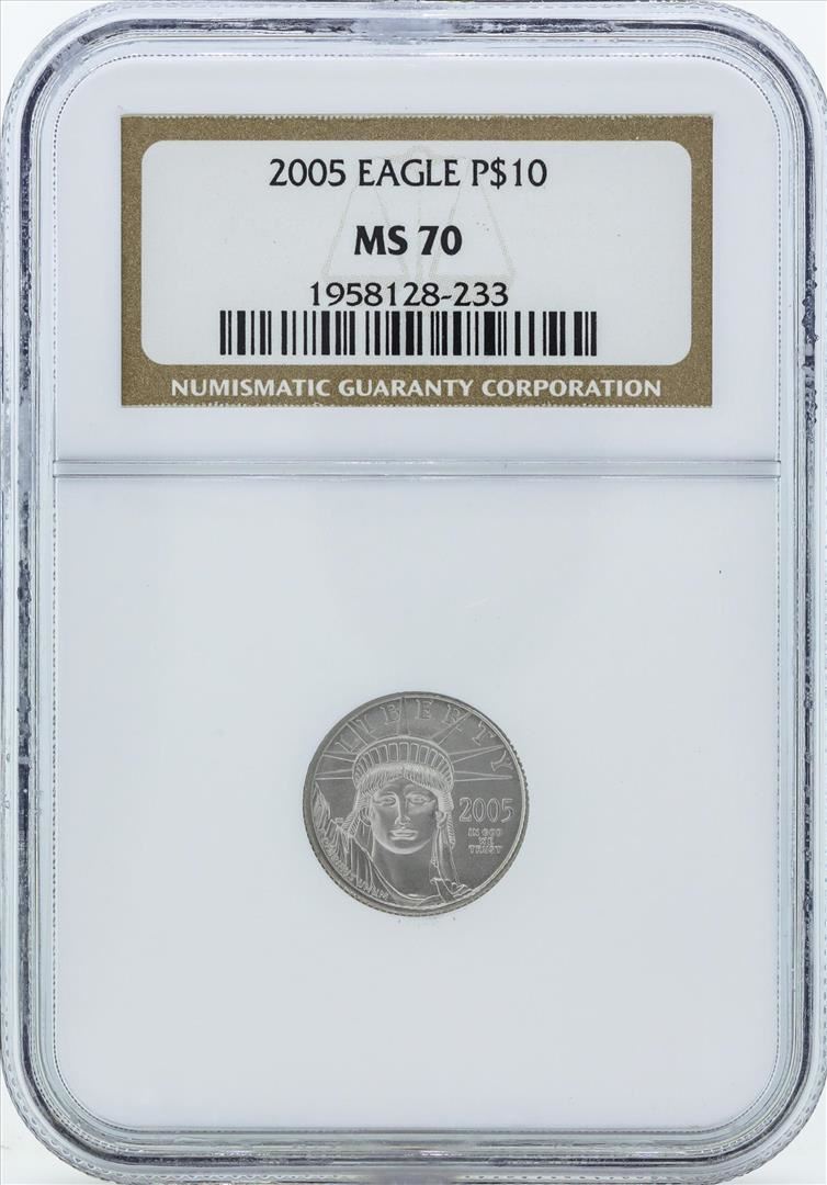 One 2005 $10 American Platinum Eagle Coin NGC MS70. NGC Certified.