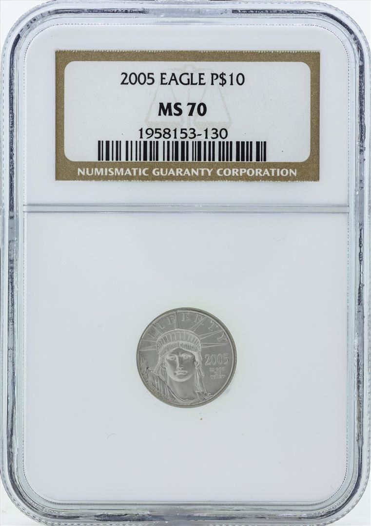One 2005 $10 American Platinum Eagle Coin NGC MS70. NGC Certified.