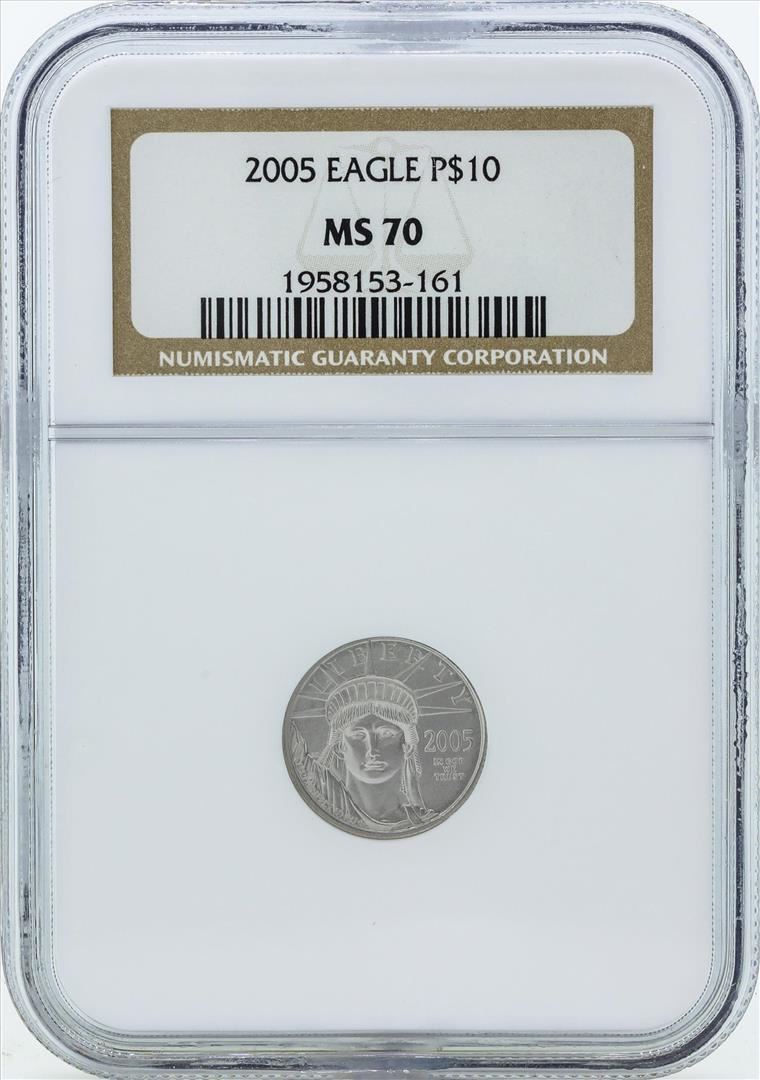 One 2005 $10 American Platinum Eagle Coin NGC MS70. NGC Certified.