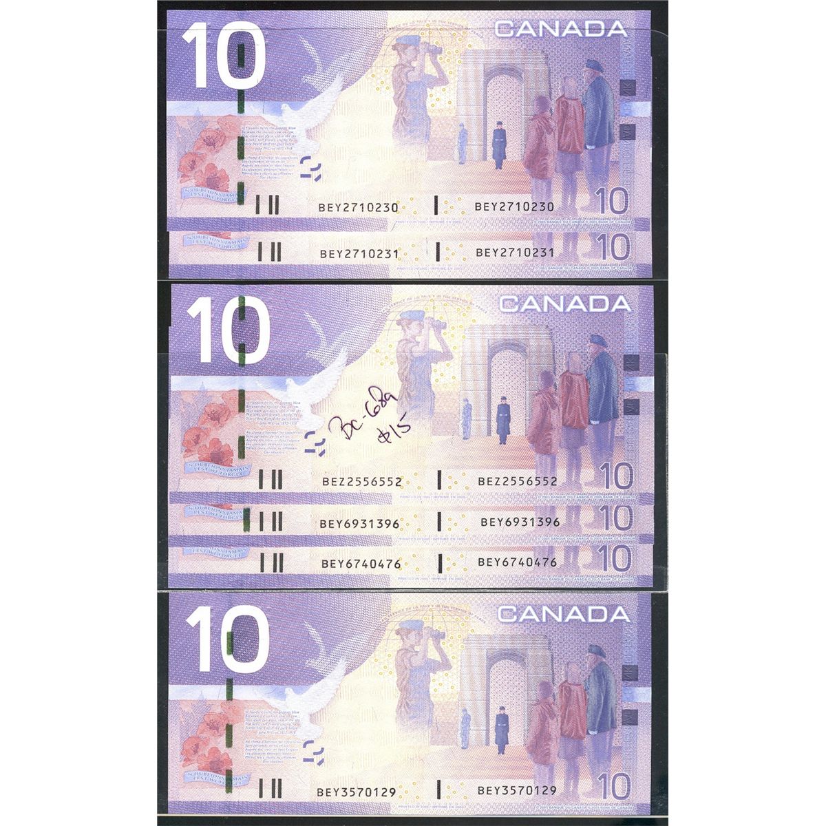 2005 $10 BC-68a(3) & BC-68aA Sheet Repl notes #BEY3570129 & BEY2710230-231. Lot of 6 Crisp UNC notes.