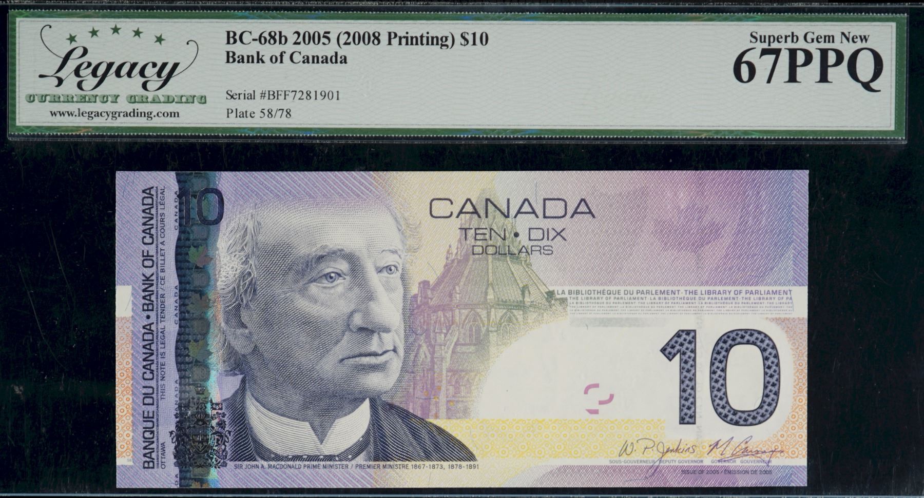 2005 $10 BC-68b #BFF7281901, Legacy Superb Gem Uncirculated-67PPQ.